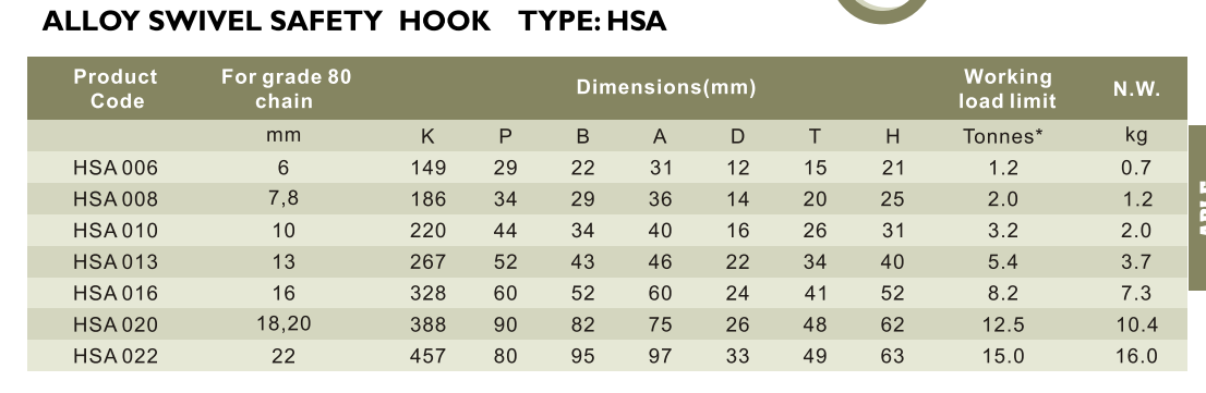 Được xếp hạng cho cả xích garde 80 và dây cáp cho ứng dụng nâng.