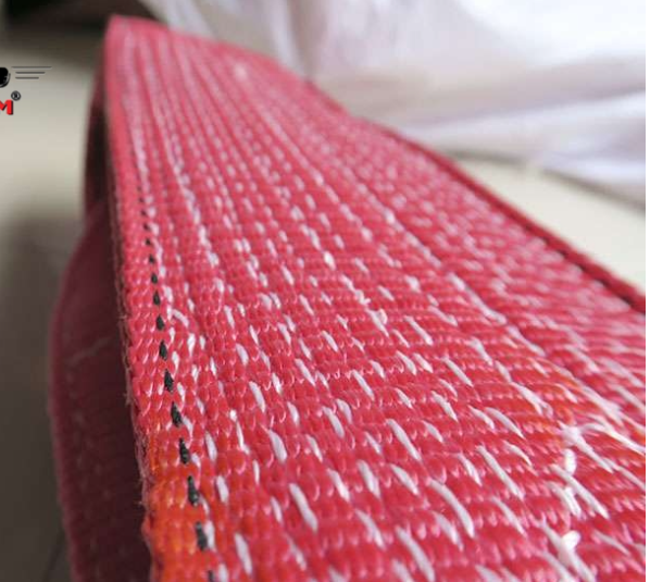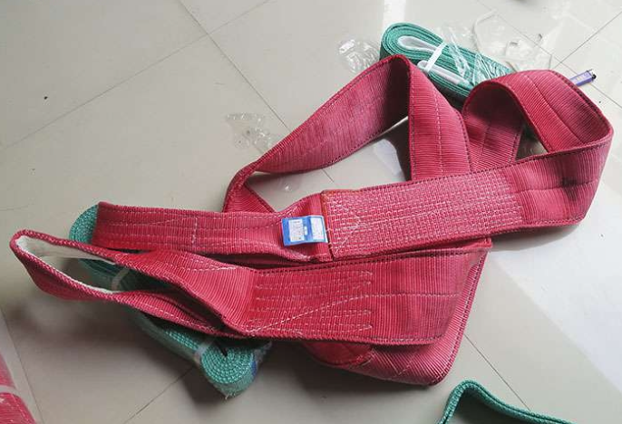 Cáp vải này là loại có bản là bản dẹp, hai đầu là dạng mắt. Đây là loại cáp vải có thể dễ dàng sử dụng để kết nối với các loại máy móc như móc cẩu để nâng hạ sản phẩm.