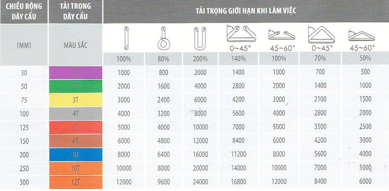 Tải trọng cũng được thể hiện qua màu sắc theo tiêu chuẩn