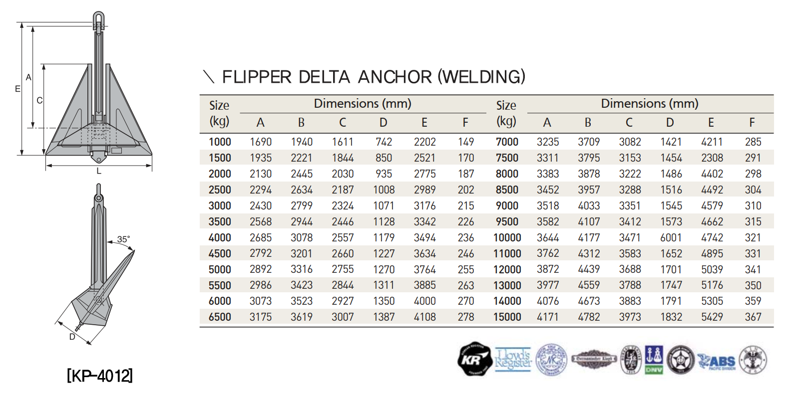 | Size (kg) | Dimensions (mm) | Size (kg | Dimensions (mm) | ||||||||||
