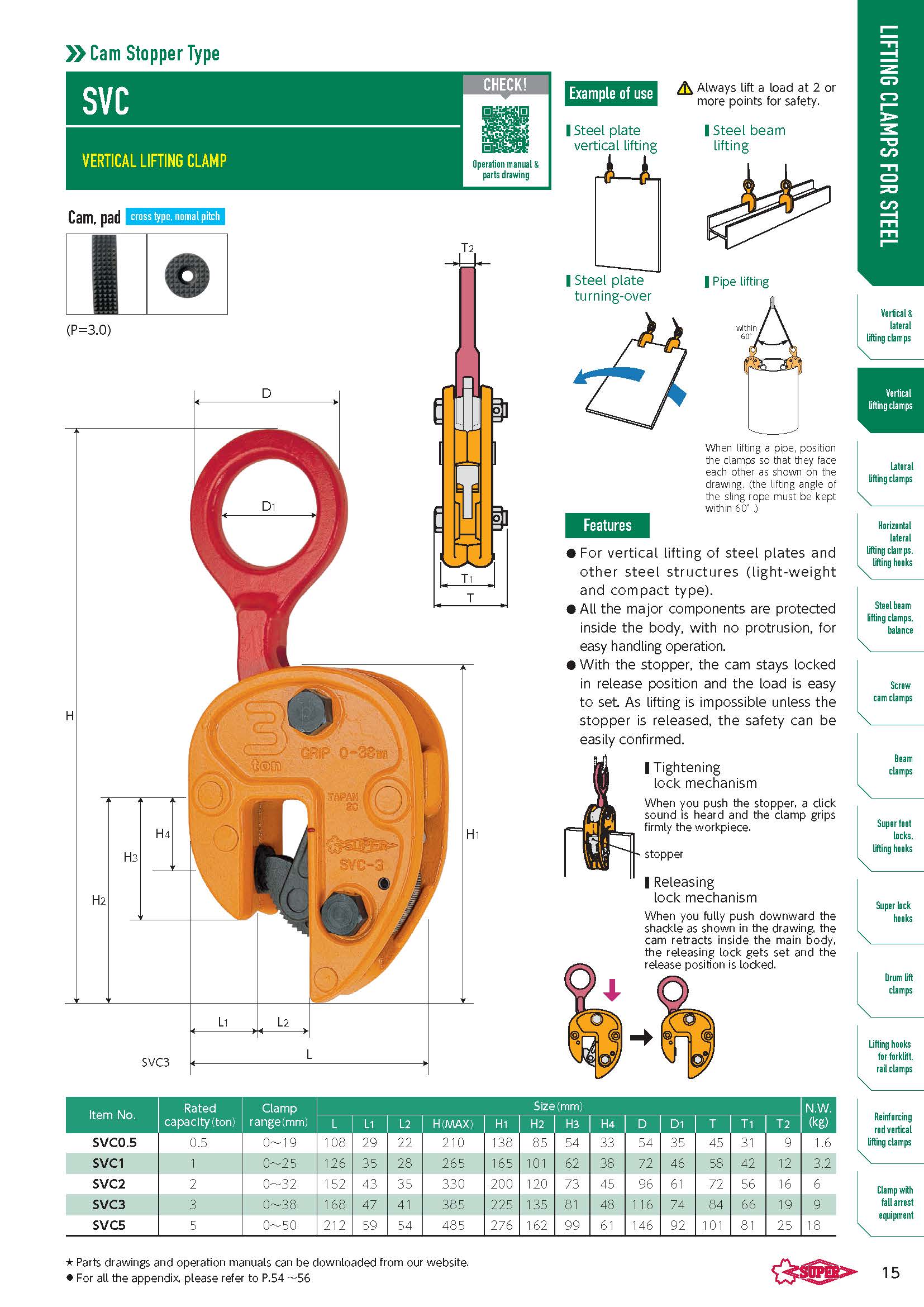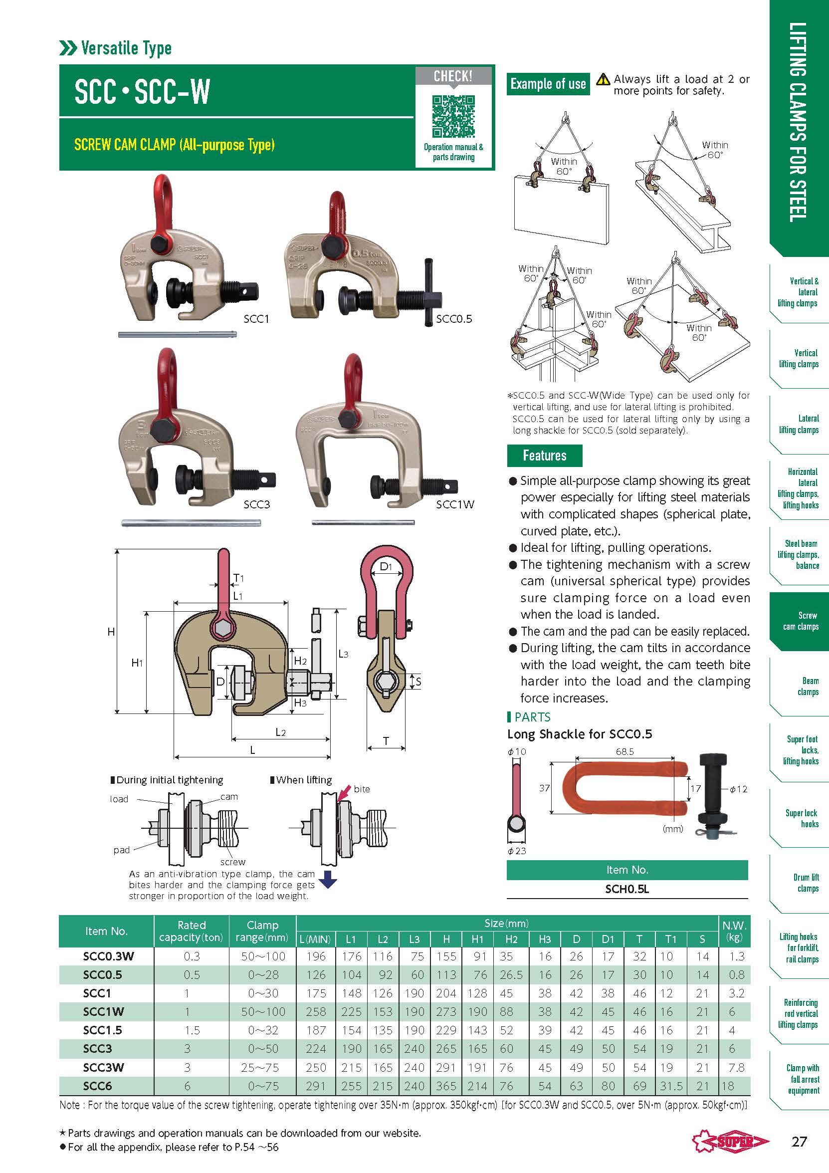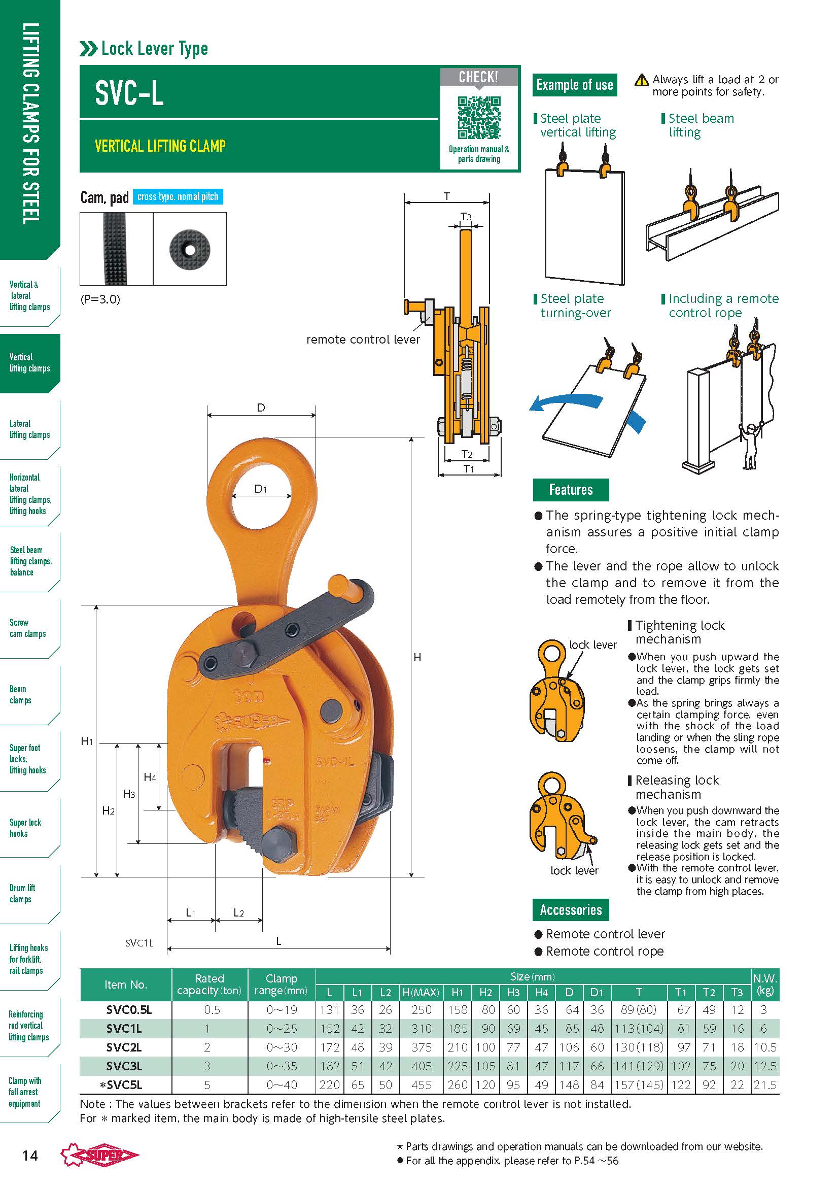 - Lực kẹp giă tăng theo tỷ lệ của trọng lượng tải.