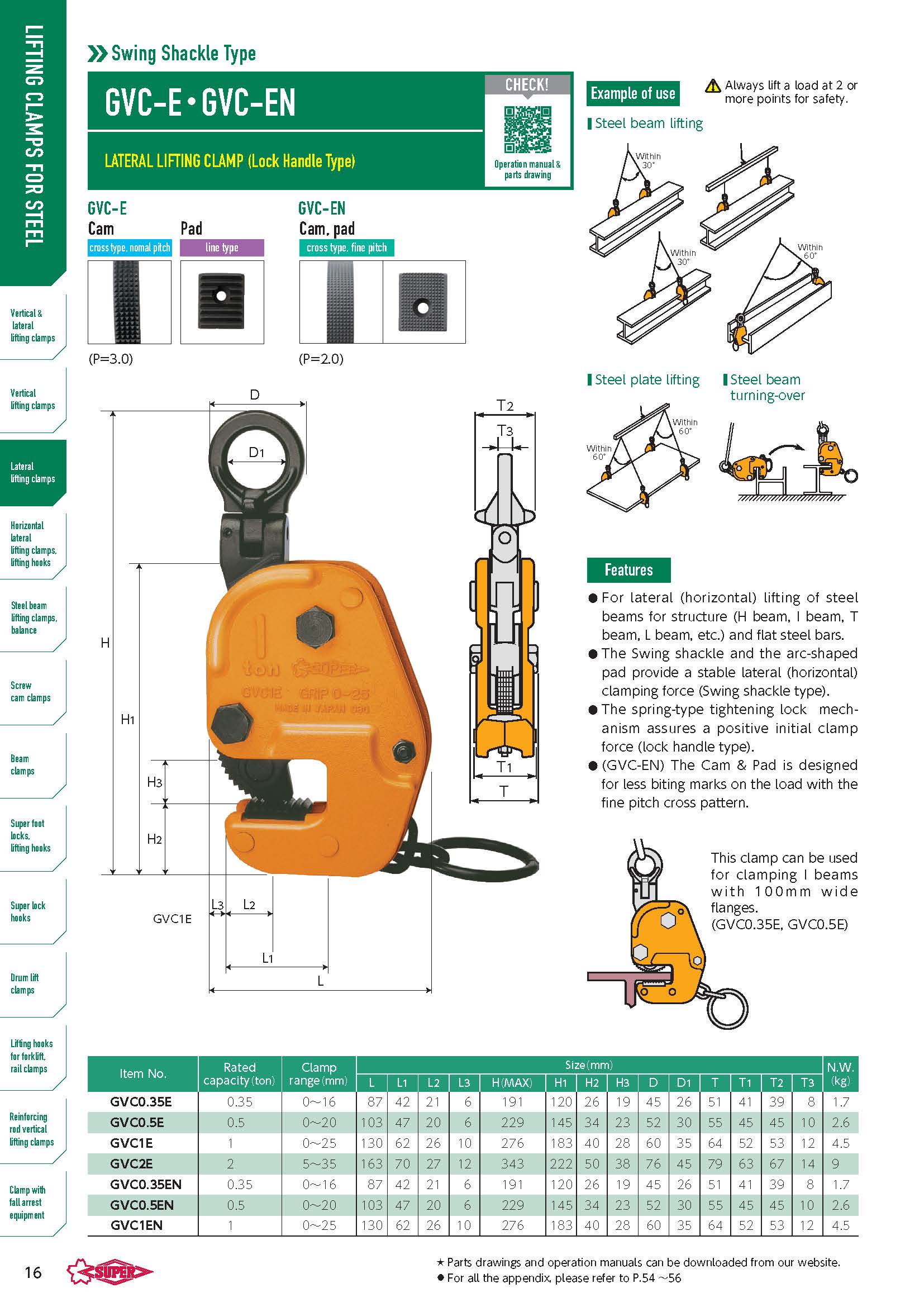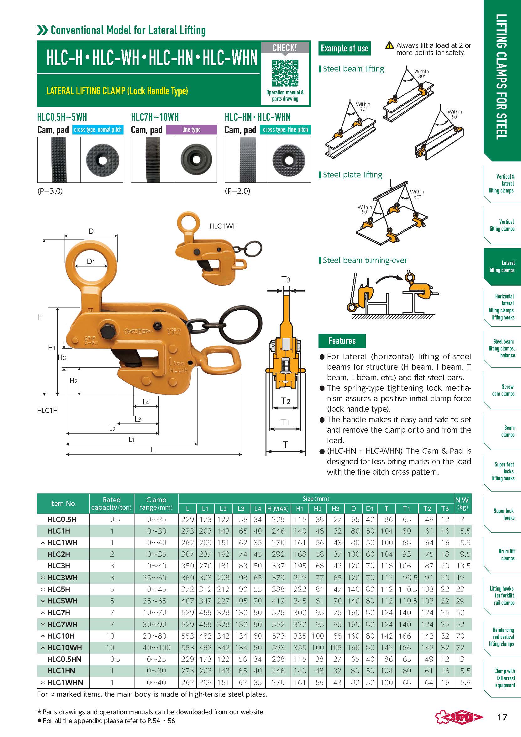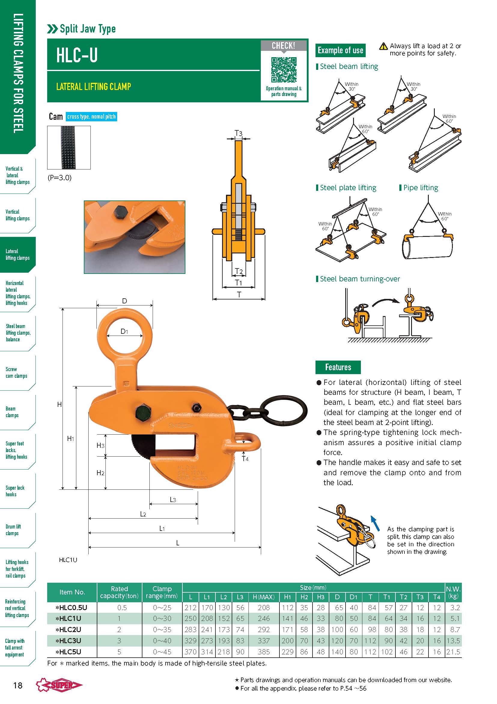 - Lực kẹp giă tăng theo tỷ lệ của trọng lượng tải.