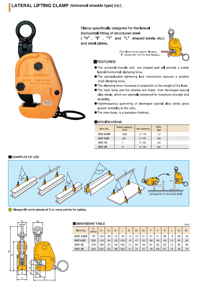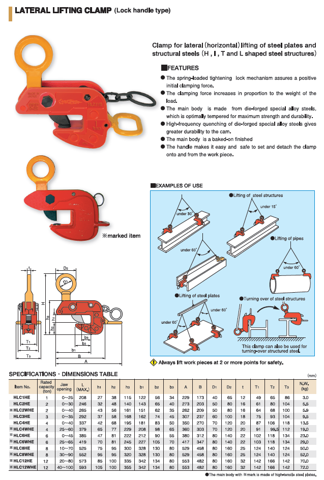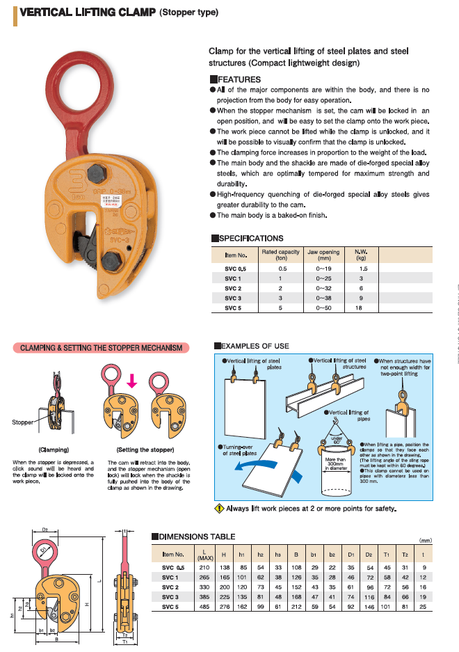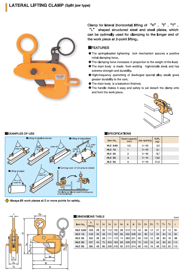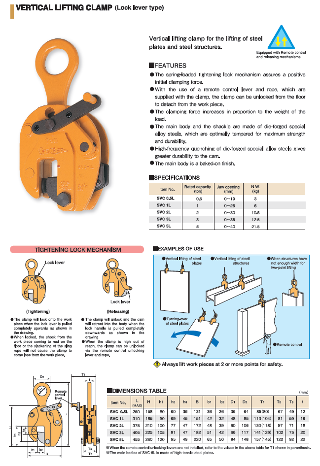 - Lực kẹp giă tăng theo tỷ lệ của trọng lượng tải.