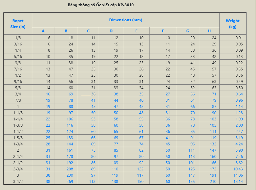 Ốc siết cáp (Forged Wire Rope Clip - KP-3010) là sản phẩm được làm từ nguyên liệu thép cacbon cao cấp rèn đúc từ thép nguyên khối cho từng bộ phận khóa cáp.