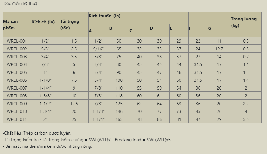 Khoá Cáp, Ốc Siết Cáp Korea, WRCL