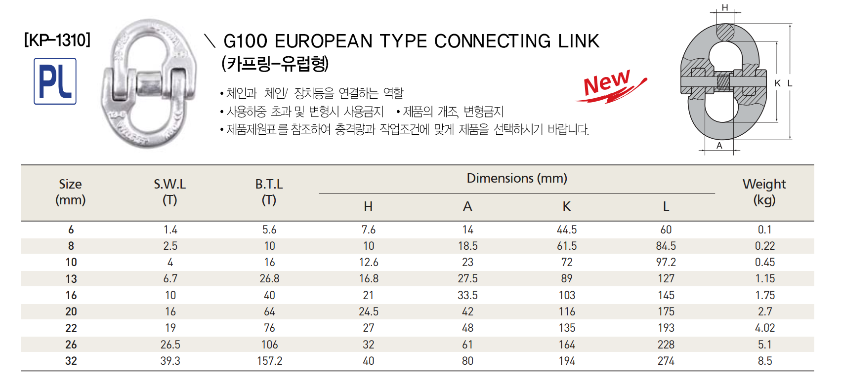 Khóa Nối Xích G100 EUROPEAN TYPE, KP-1310, KBC - Hàn Quốc