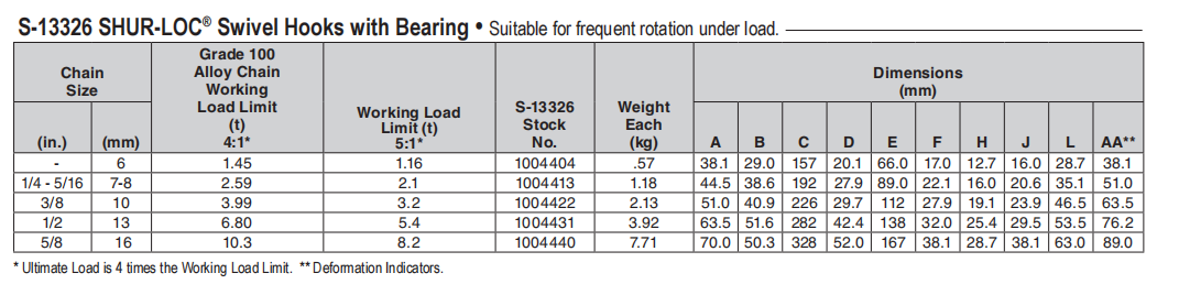 Móc xoay S-13326 sử dụng thiết kế ổ trục chống ma sát cho phép móc xoay tự do khi chịu tải.