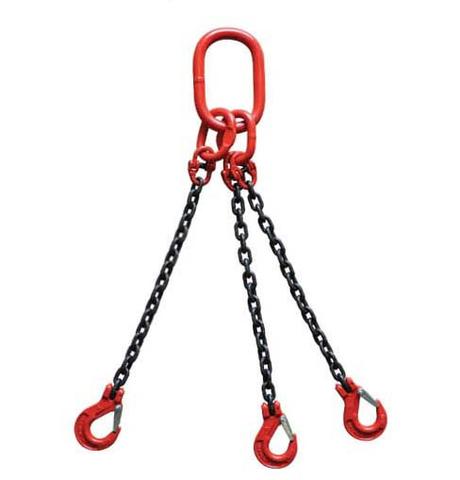 Bộ sling xích cẩu hàng 3 chân G80 là bộ xích cẩu gồm 3 chân được kết nối bởi các phụ kiện gồm : 01 vòng khuyên đôi, 03 khóa nối xích để kết nối giữa vòng khuyên và dây xích, 03 dây xích có chiều dài tùy theo yêu cầu của người sử dụng và 04 móc cẩu có chốt lưỡi gà chống trượt.