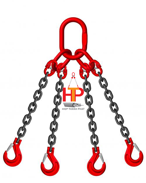 Là chùm xích có 4 sợi xích chịu lực được liên kết với nhau bằng vòng khuyên đơn hoặc vòng khuyên đôi để móc vào cẩu của thiết bị nâng hạ, một đầu còn lại được liên kết với móc cẩu hoặc ma ní hoặc kẹp tôn được dễ dàng liên kết với kiện hàng, giúp tạo ra sự thuận tiện của quá trình nâng cẩu hàng trong các nhà kho, kho bãi, cảng biển…